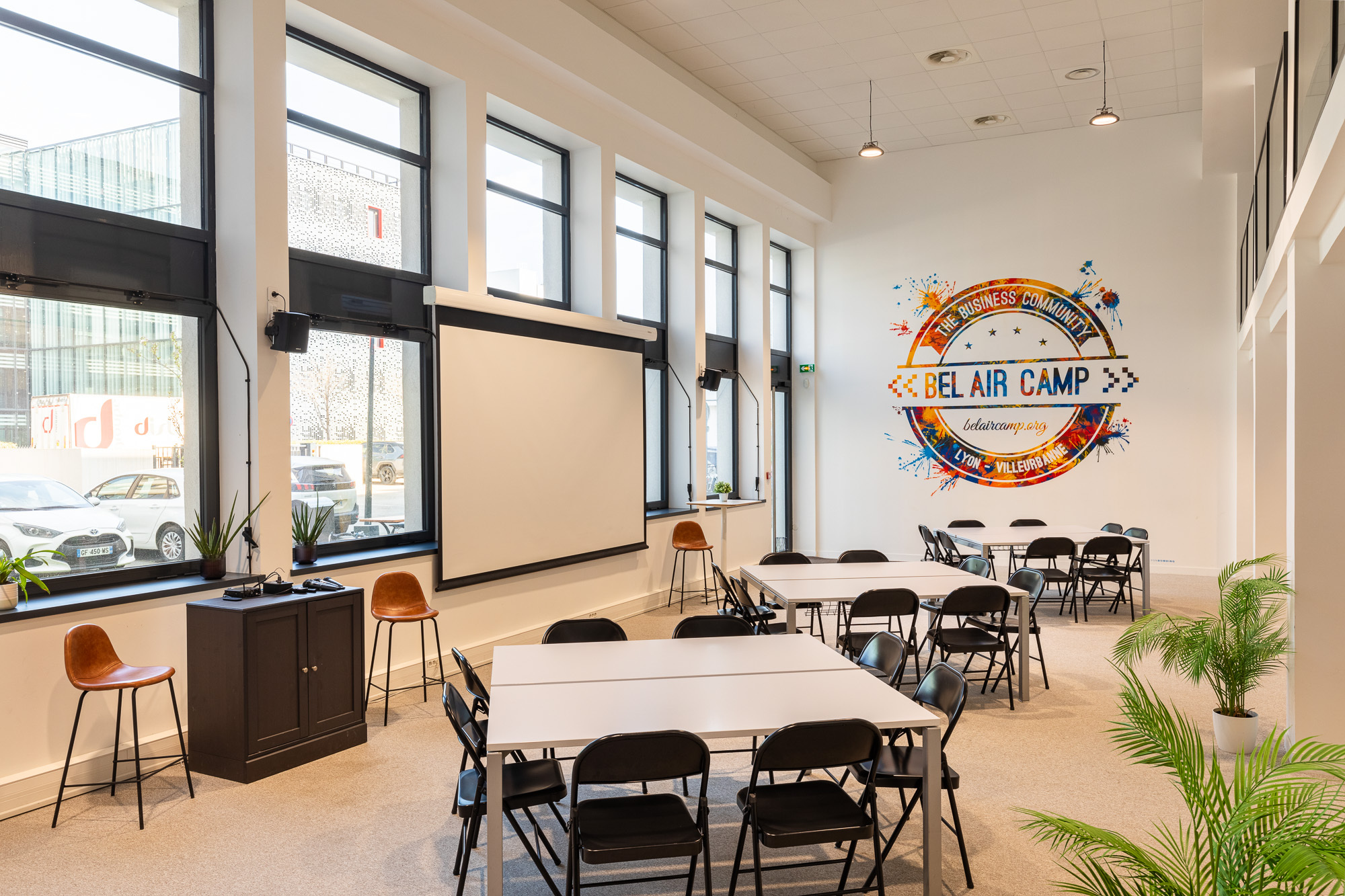 À Villeurbanne, l’école Bel Air offre deux zones pour événements de 110 m² et 300 m², et diverses salles de formation bien équipées. Ce lieu est parfait pour des formations, séminaires ou ateliers d’entreprise, situé dans un environnement professionnel, moderne et adaptable au sein d’une communauté d’entrepreneurs.