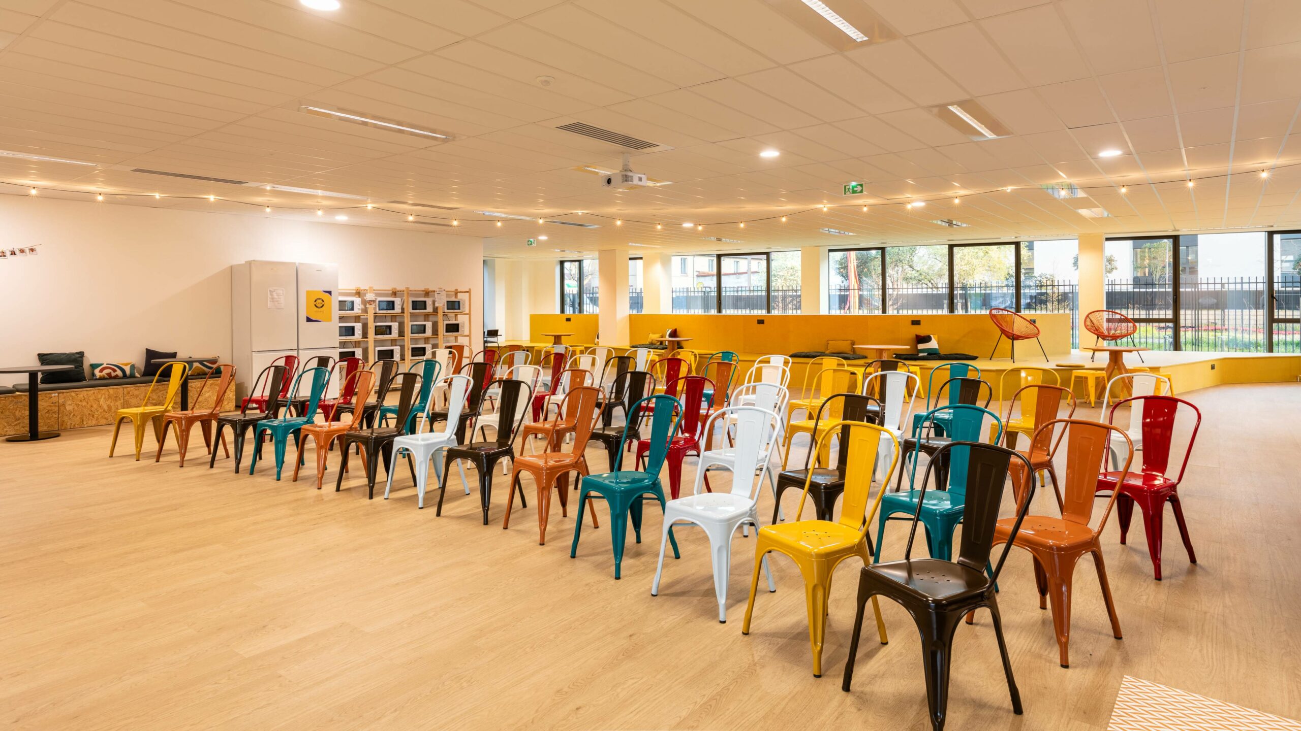 À Villeurbanne, l’école Bel Air offre deux zones pour événements de 110 m² et 300 m², et diverses salles de formation bien équipées. Ce lieu est parfait pour des formations, séminaires ou ateliers d’entreprise, situé dans un environnement professionnel, moderne et adaptable au sein d’une communauté d’entrepreneurs.