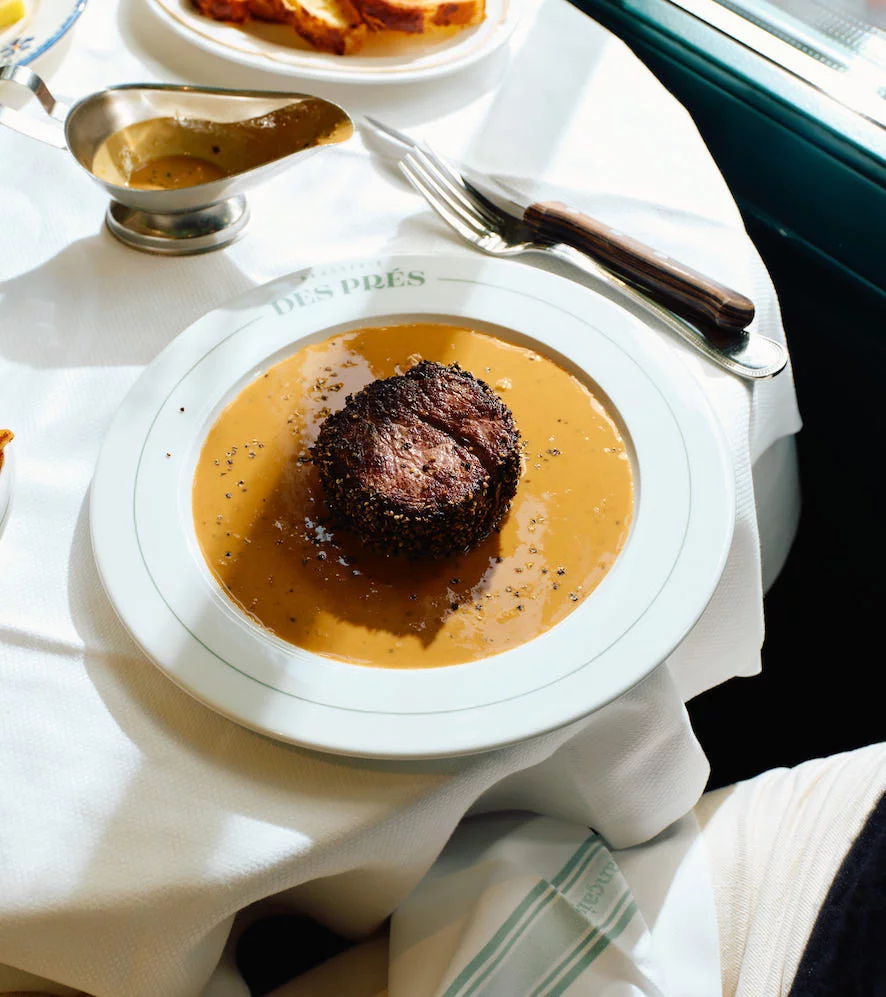 Nichée en long et en large de l’adorable Cour du Commerce à Saint-Germain-Des-Prés, la Brasserie Des Prés, quatrième adresse de la Nouvelle Garde, embrase les désirs d’escapade sur la rive gauche. Elle offre près de 180 couverts dedans et se gonfle de 40 places en terrasse. Cette fière table de terroir à l’ambiance toujours aussi cadencée se frotte pour la première fois aux grands classiques presque bourgeois de la cuisine traditionnelle française.