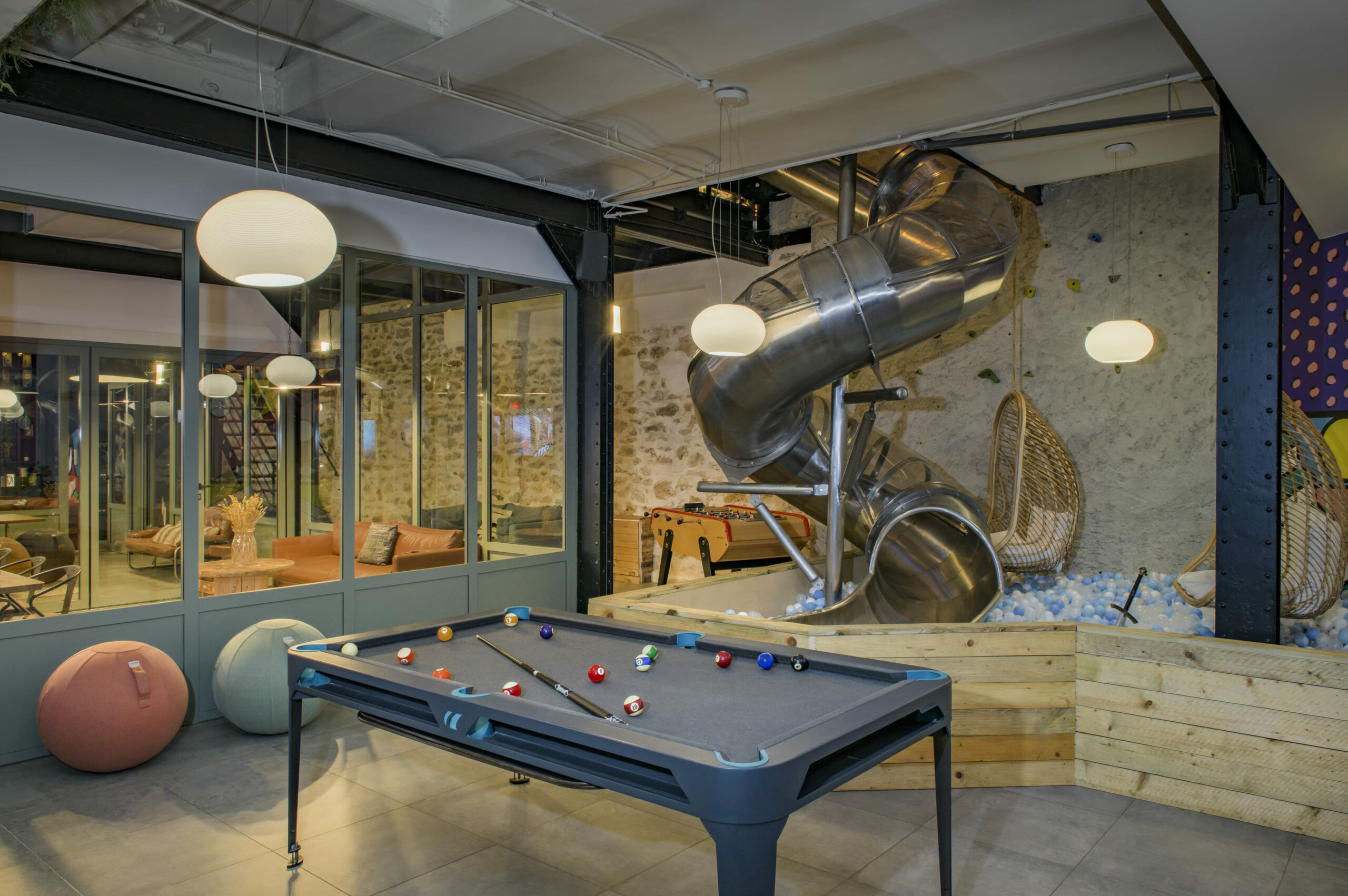 ✦ Espaces ludiques différenciants : toboggan et piscine à balles