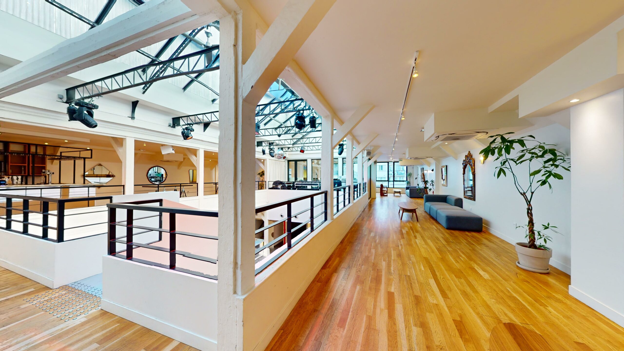 Cet ancien atelier de 1865 à été refait à neuf et entièrement repensé pour être modulable et personnalisable. L’immense verrière offre une lumière naturelle aux différents espaces, tous équipés de technique.