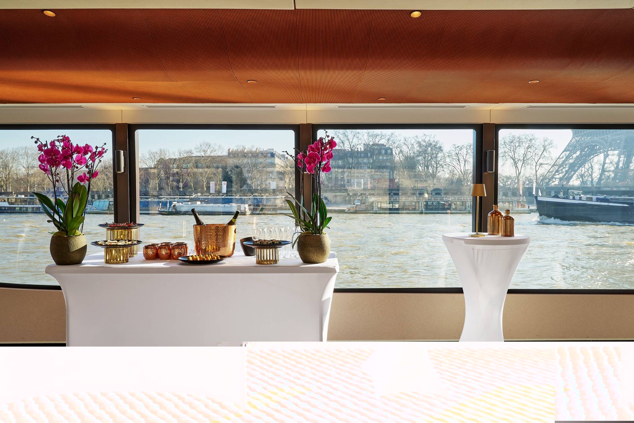 Naviguez à bord de l’Héméra, notre bateau à l’avant-garde du design et de la technologie. Ses intérieurs spacieux et élégants, bordés de larges baies vitrées, offrent une vue imprenable sur la Seine. Idéal pour vos événements, ce navire 100% électrique d’une autonomie de 3 h privilégie le confort et la responsabilité écologique, vous assurant une croisière silencieuse et raffinée. Laissez-vous séduire par l’exclusivité Héméra pour une réception hors du commun