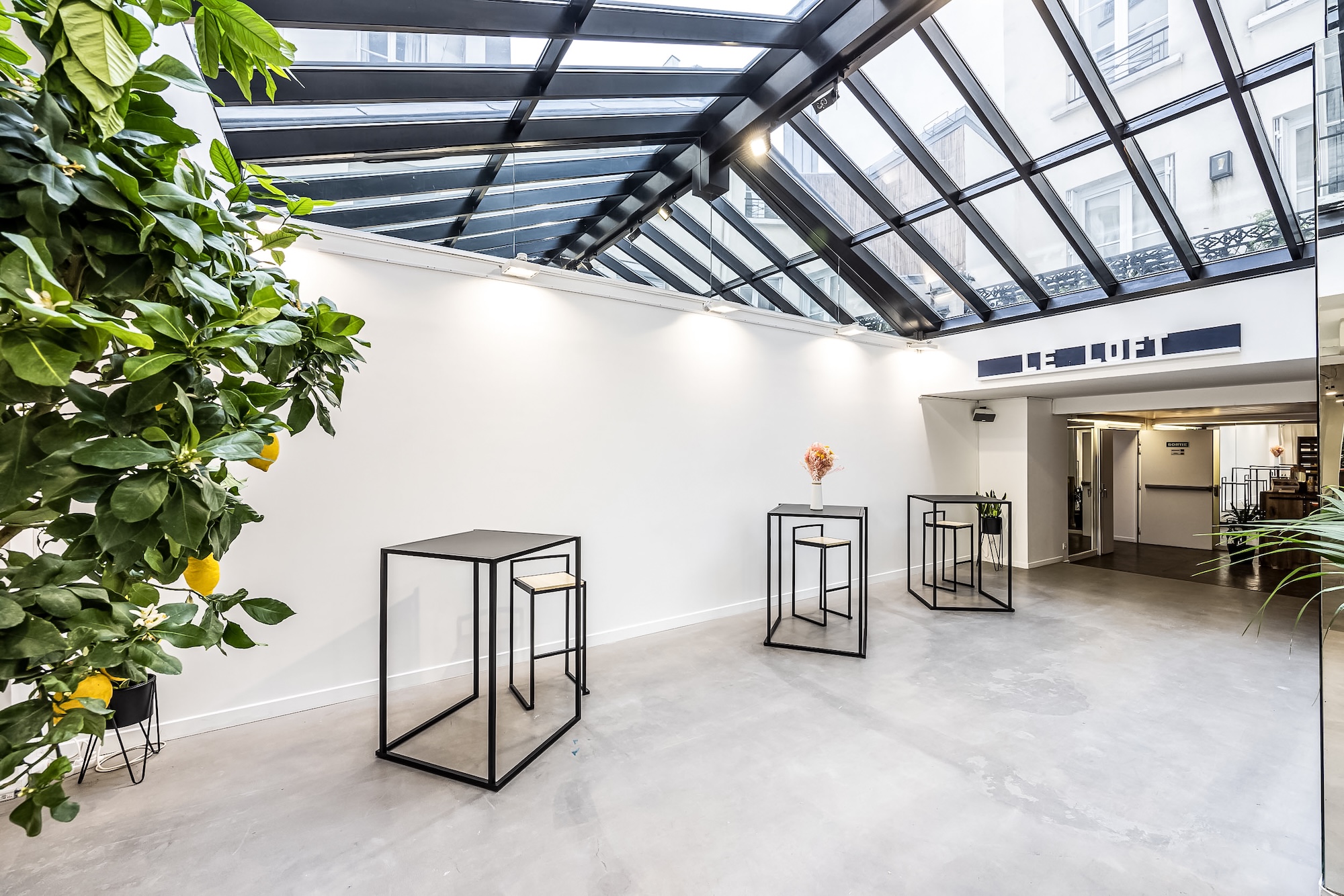 Le Loft (230 m²) : Sous une grande verrière parisienne, cet espace raffiné accueille cocktails, showrooms ou journées presse dans une ambiance pleine de charme, jusqu’à 150 invités.
