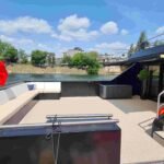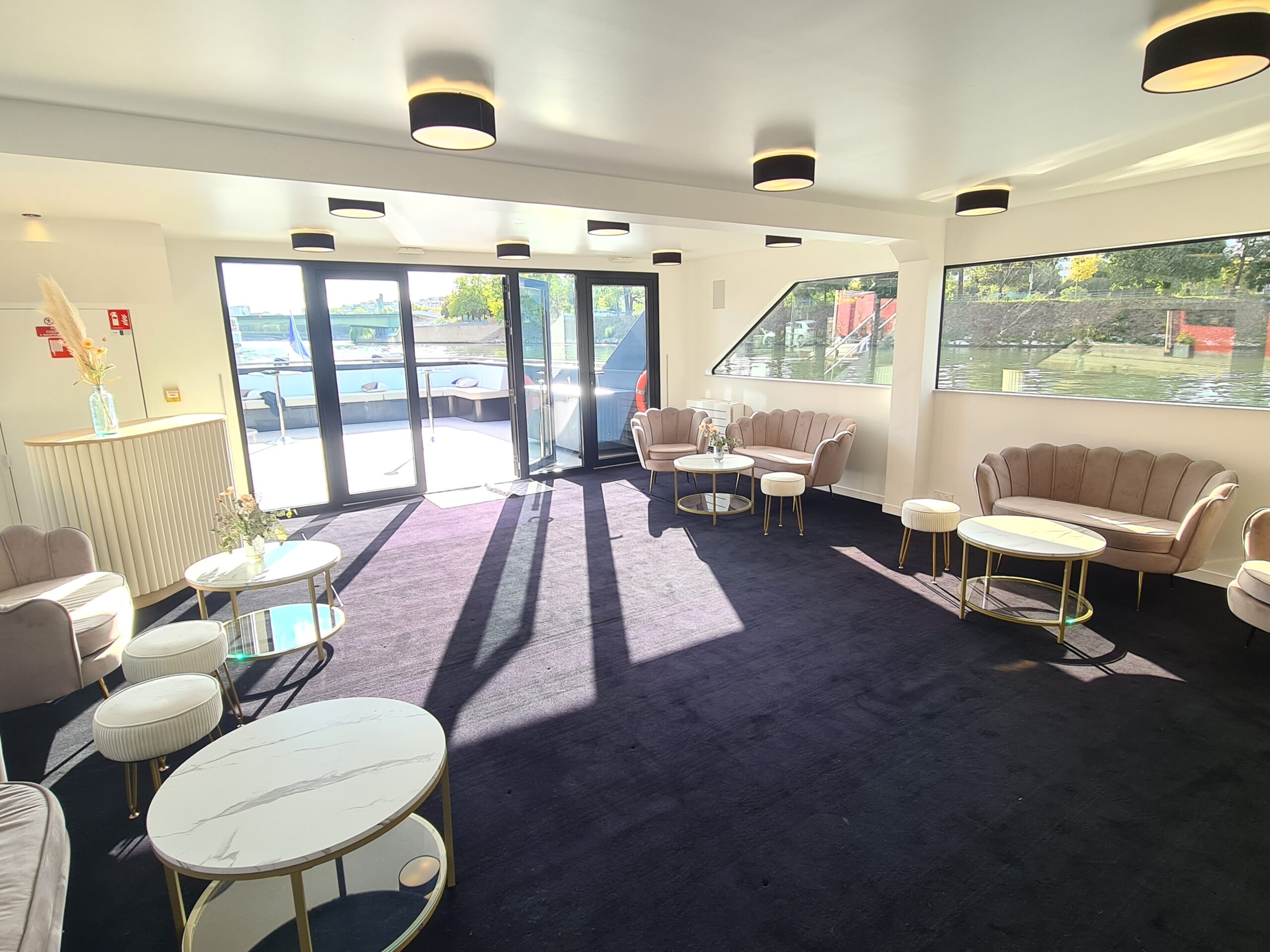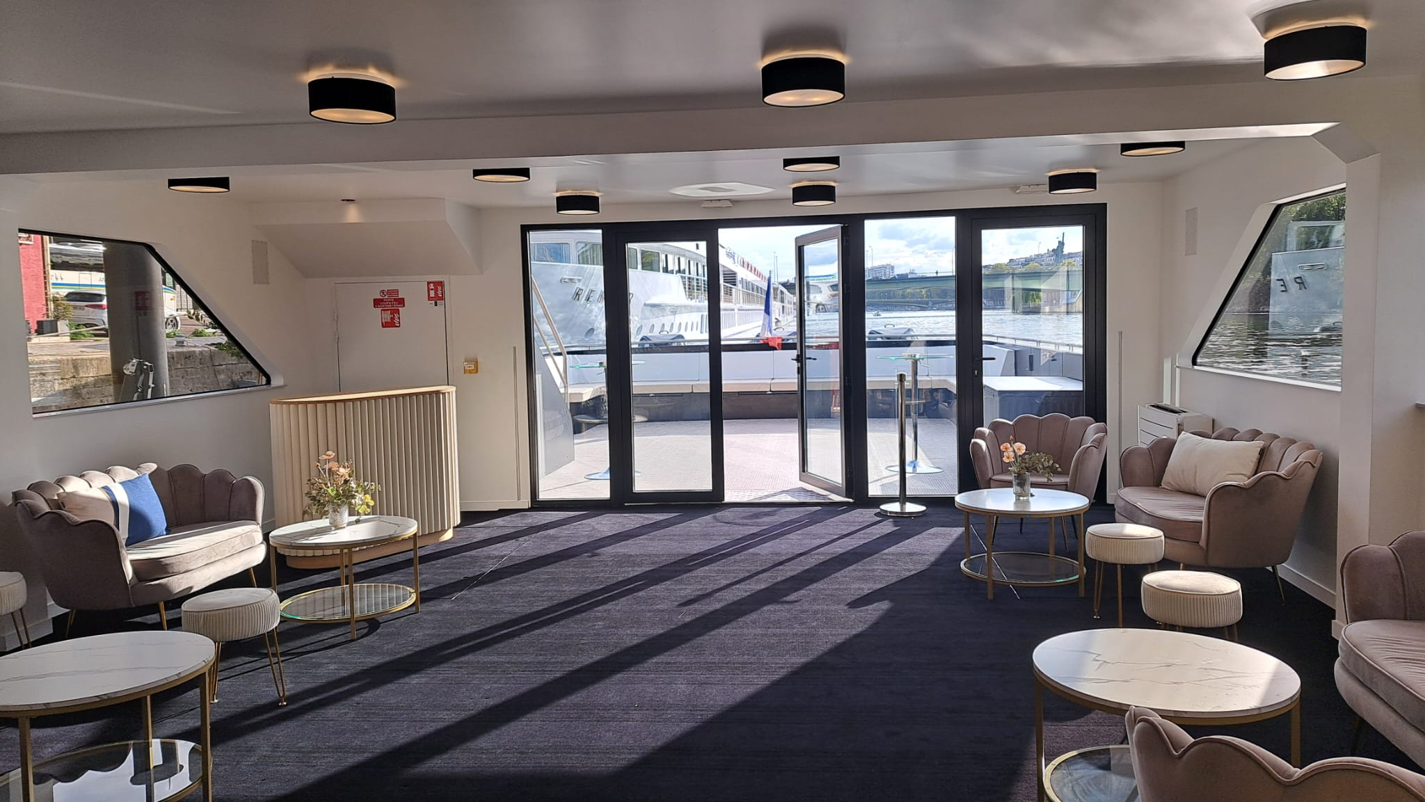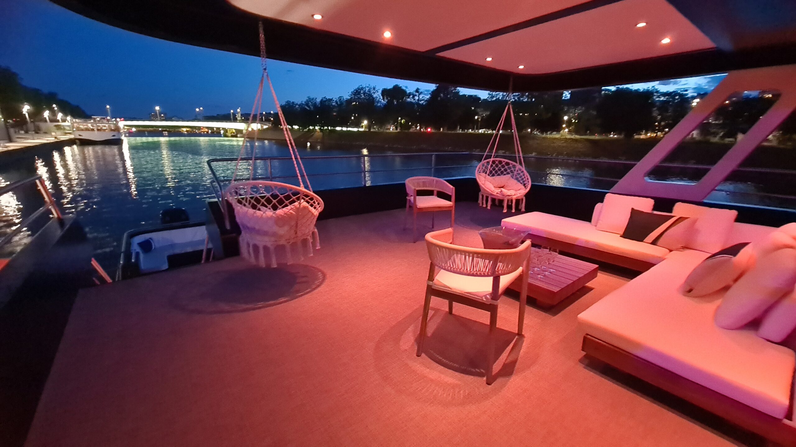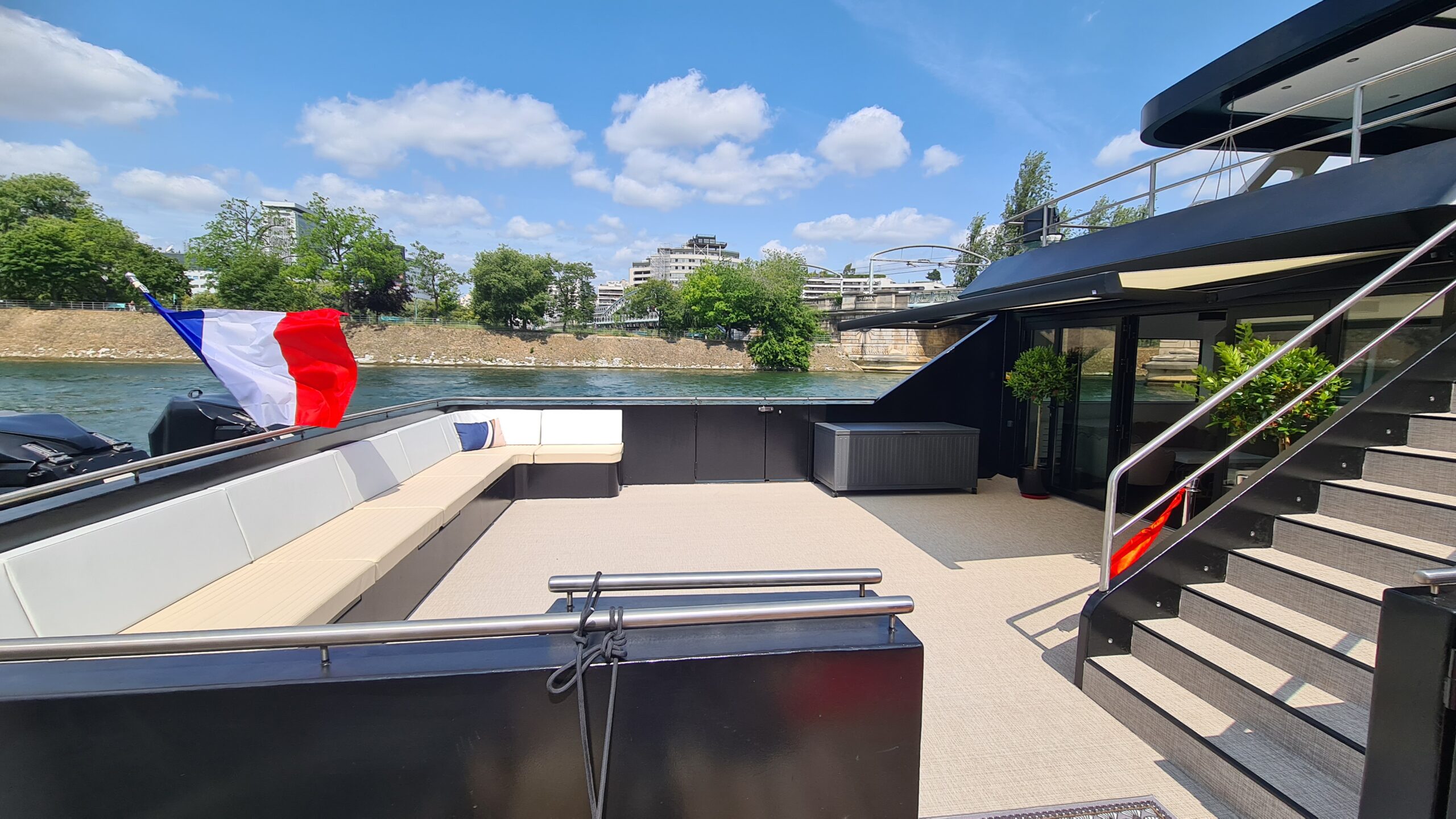 Ce bateau est le dernier-né au sein de Paris Yacht Marina. Inauguré en juin 2025, il offre une expérience unique sur la Seine pour des réceptions privées jusqu’à 63 personnes. Élégant et moderne, il dispose d’un salon lumineux, d’un pont supérieur couvert surplombant une large terrasse extérieure, de grandes baies vitrées panoramiques pour profiter au maximum du paysage parisien.