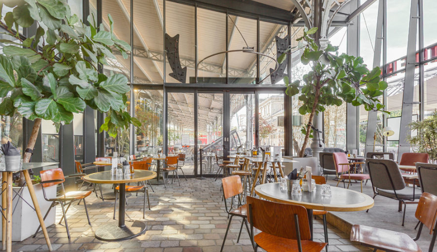 Ce café-restaurant privatisable de plus de 500 m², pouvant accueillir jusqu’à 300 personnes, offre plusieurs espaces : une grande verrière intérieure baignée de lumière, une terrasse couverte et un jardin végétalisé.