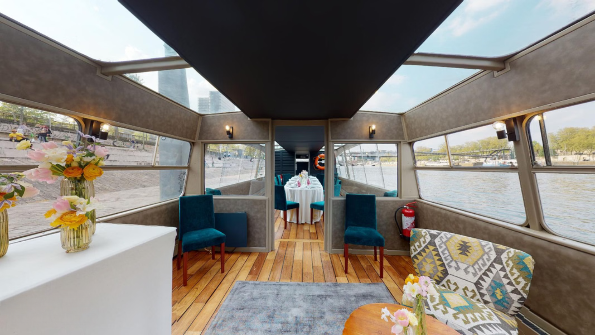 Accessibilité : Amarrée au port de Bercy, La Rocca IV dispose d’un parking privé gratuit pour vos convives.
