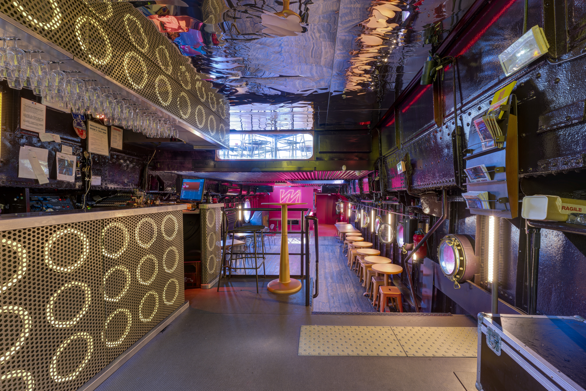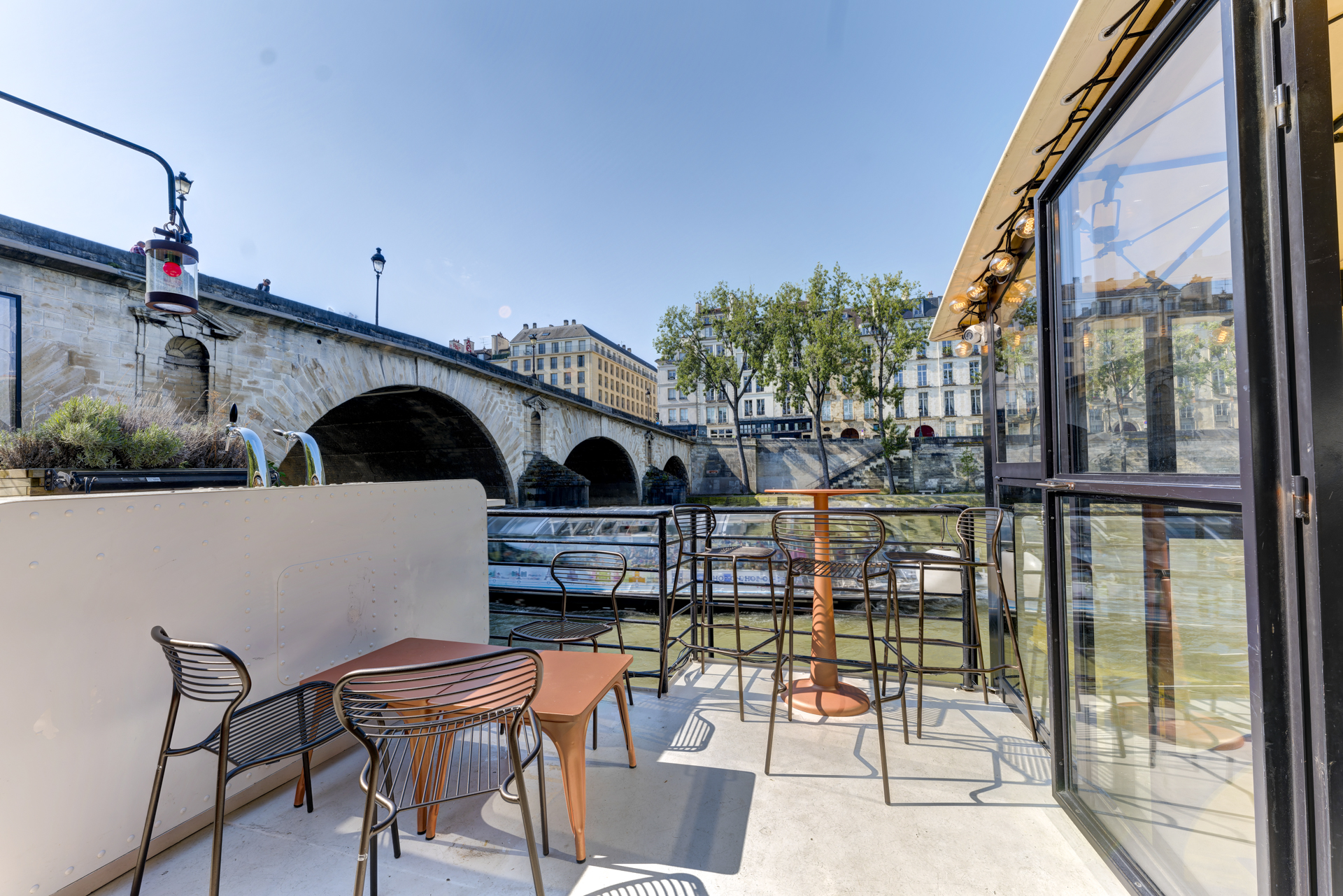 De mai à octobre, la péniche propose une grande terrasse extérieure, pouvant recevoir jusqu’à 450 personnes dans un cadre privilégié avec concerts live. Idéale pour des afterworks, événements de groupe ou cocktails, elle offre une ambiance musicale conviviale et animée.