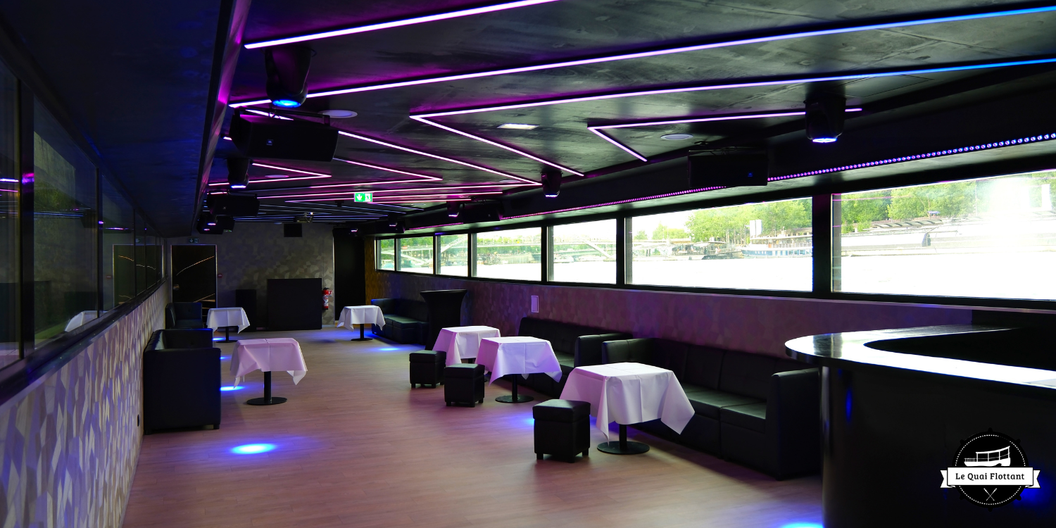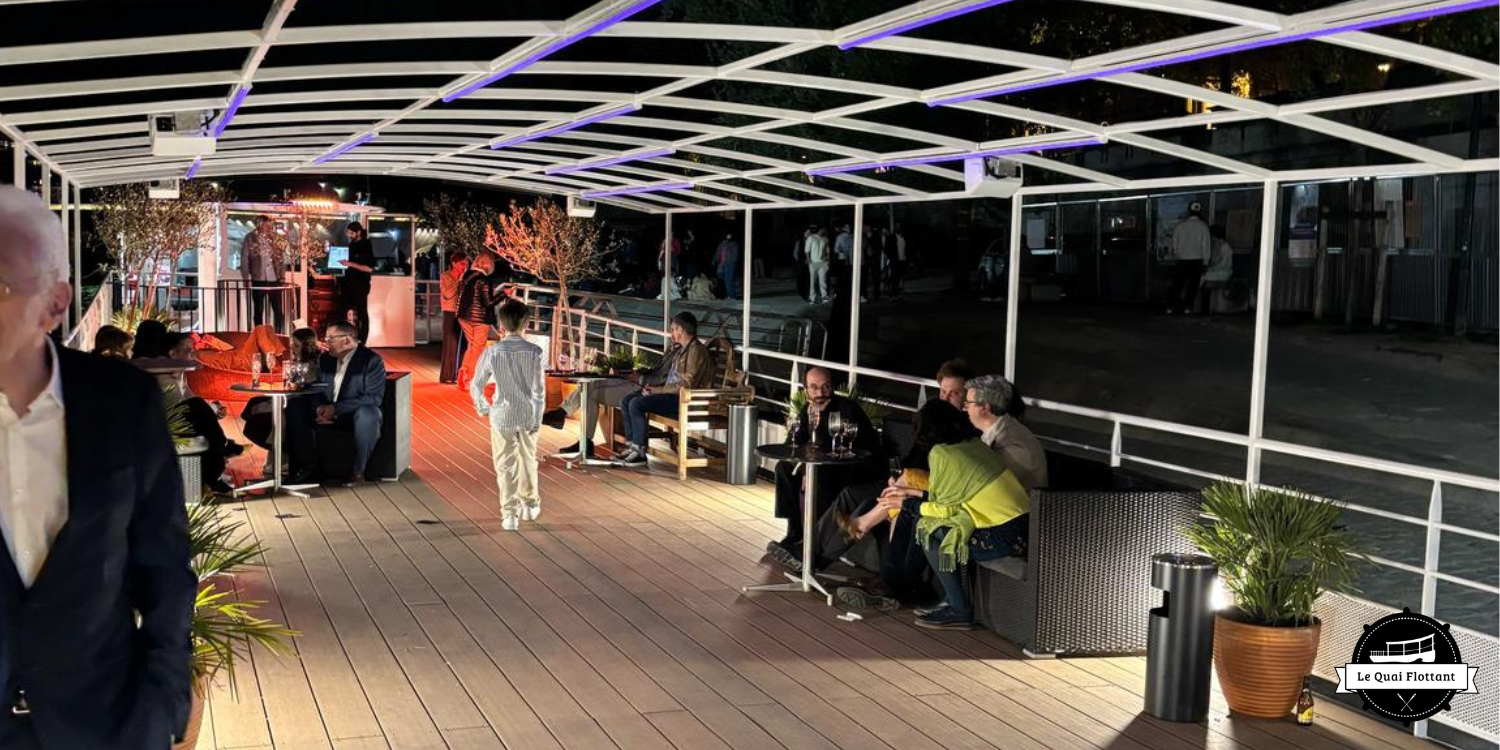Bienvenue à bord du Quai Flottant, un cadre unique pour tous vos événements à Paris ! A l’occasion d’un séminaire ou tout autre événement, offrez-vous un moment magique sur la Seine à bord de notre péniche entièrement refaite à neuf : matériaux nobles, services indispensables et panorama exceptionnel sur la Seine et sur la capitale.