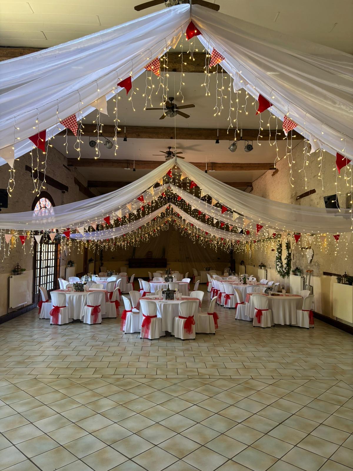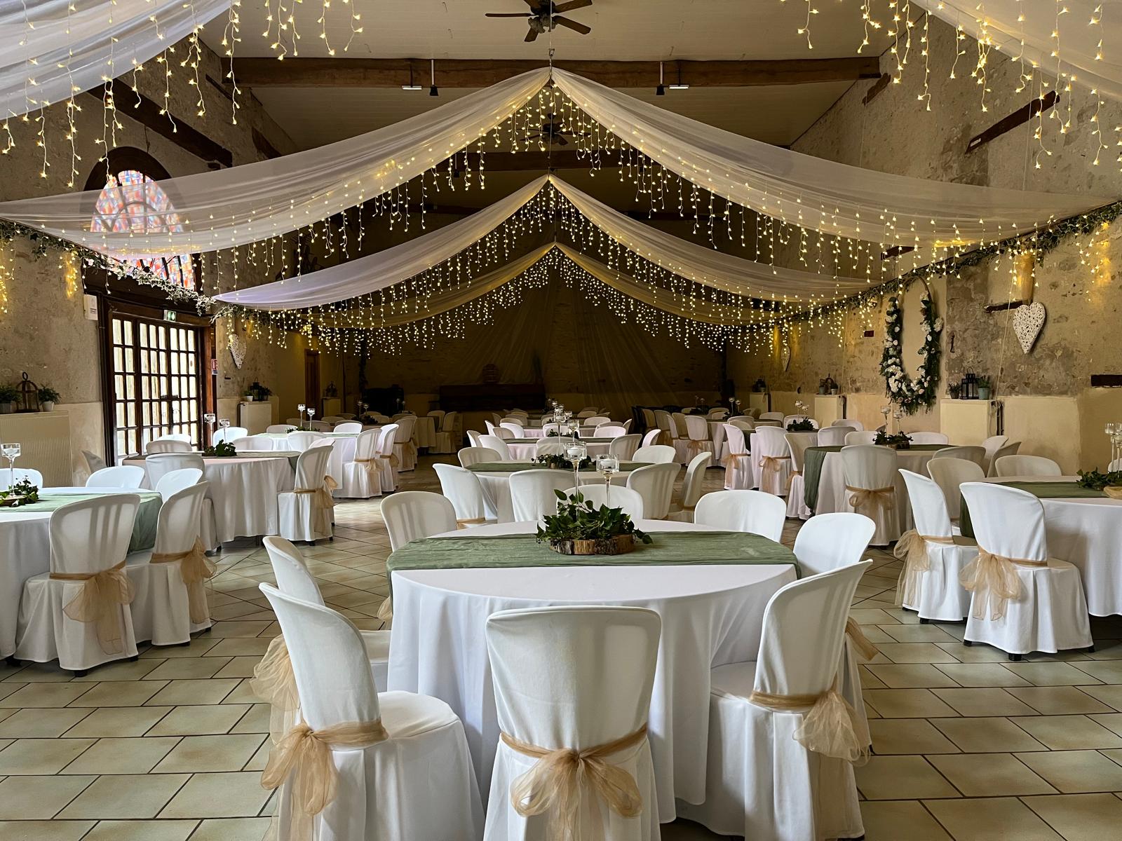 La grande salle des Granges du Chesnay vous accueille dans un cadre spacieux et élégant, parfait pour réunir famille, amis ou collaborateurs.