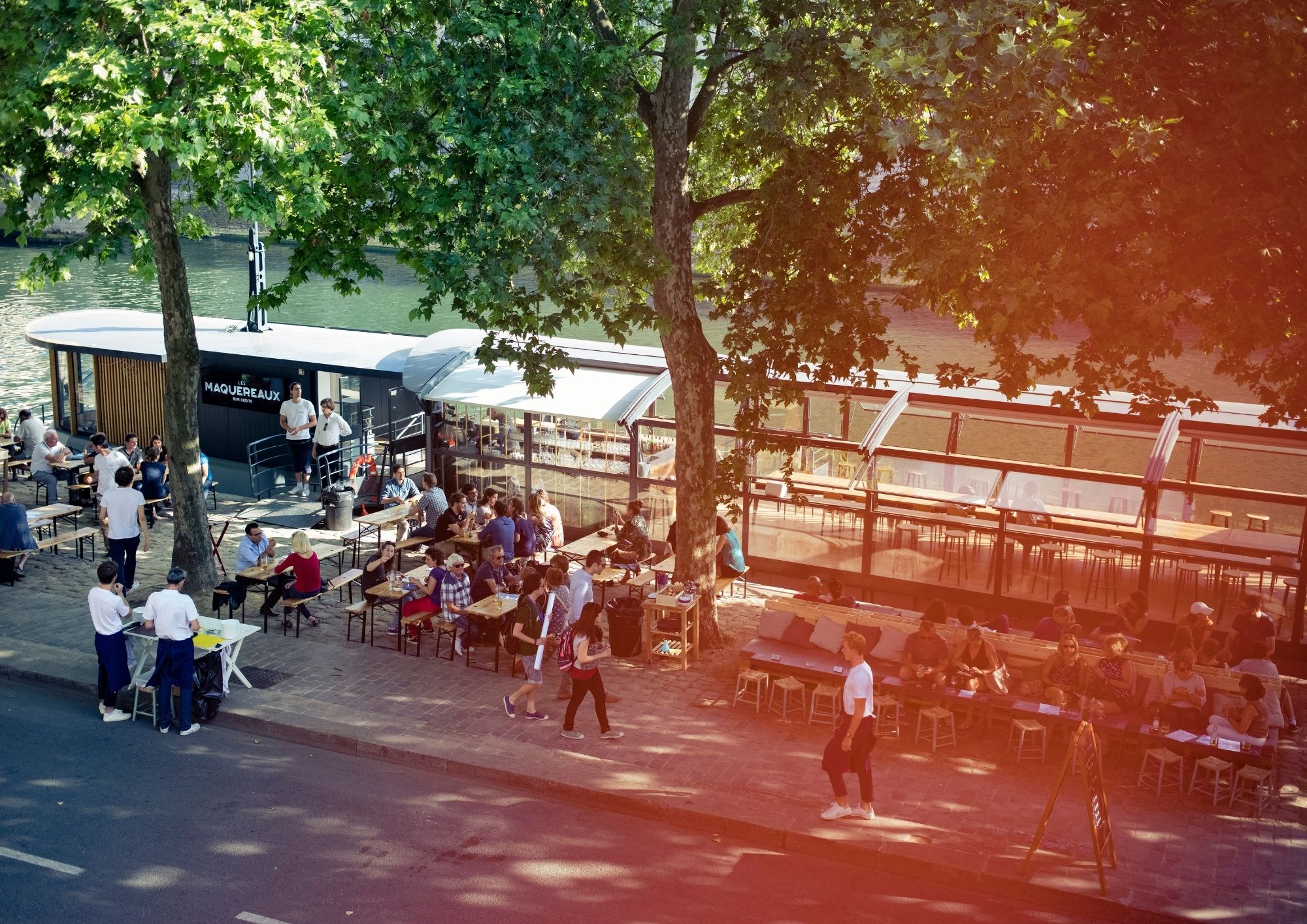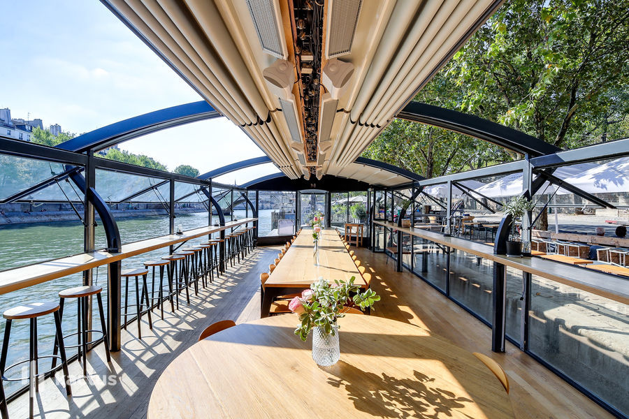 Péniche à quai avec toit ouvrant et des espaces en terrasse, Les Maquereaux Rive Droite c’est une expérience unique au coeur de Paris en face l’Île St Louis. « La Mer à Paris » certains diront… Ici, entre le Pont supérieur et le pont inférieur, groupe entreprise ou particuliers profitent d’une pause hors du temps. Cocktail dinatoire, dîner assis, soirée dansante, séminaire, petit déjeuner, team-building… Tous les formats sont possibles autour d’une cuisine maison!