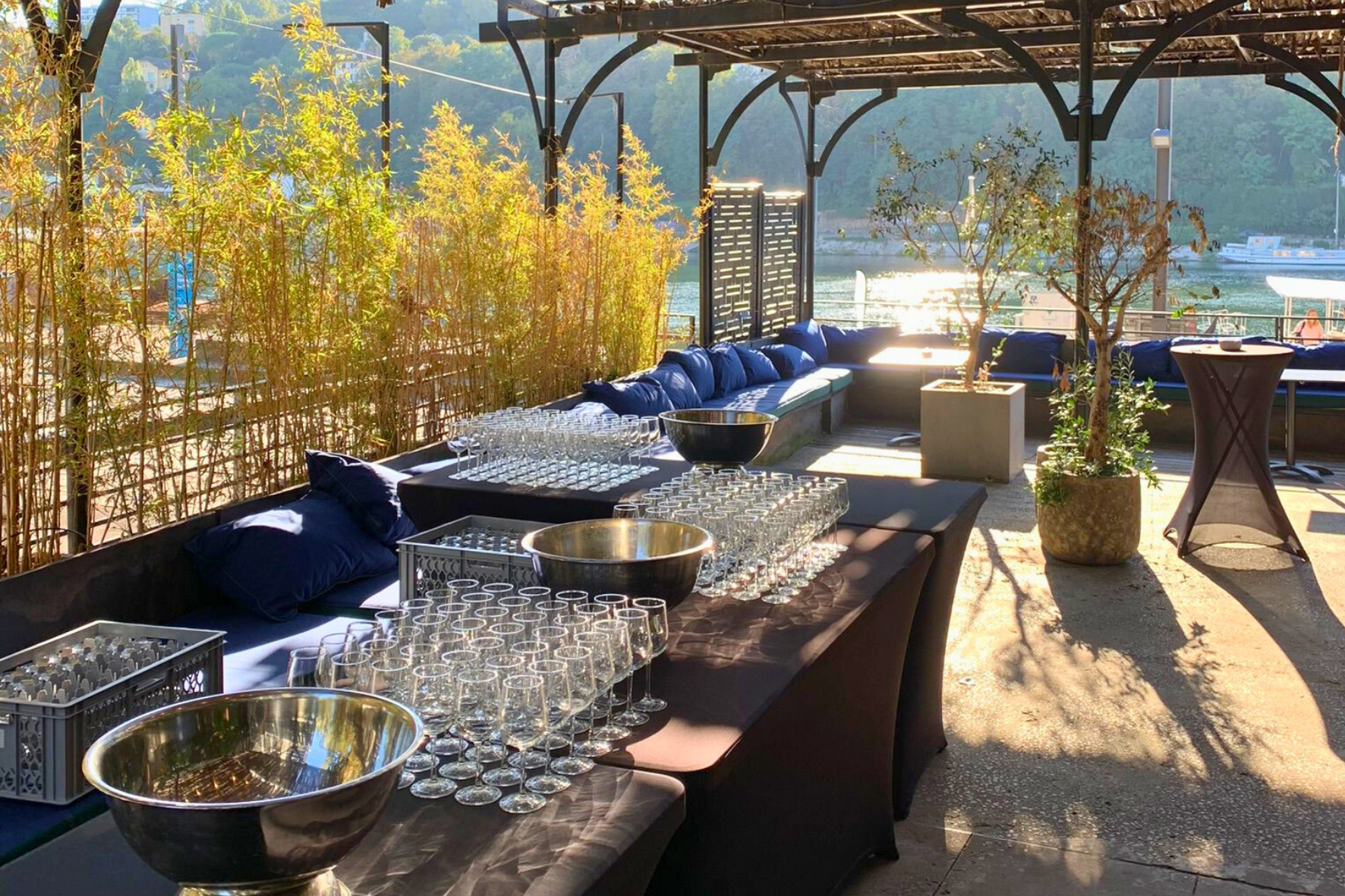 Découvrez notre toute nouvelle salle de réception au cœur du quartier Confluence : L’Italien met à votre disposition un espace intérieur spacieux de 350 m², accompagné de plus de 200 m² de terrasse offrant une vue spectaculaire sur la Saône. Très modulable, cet espace vous permet aisément d’organiser divers événements, que ce soit un séminaire, une soirée entre collaborateurs, ou même une journée de Team Building.