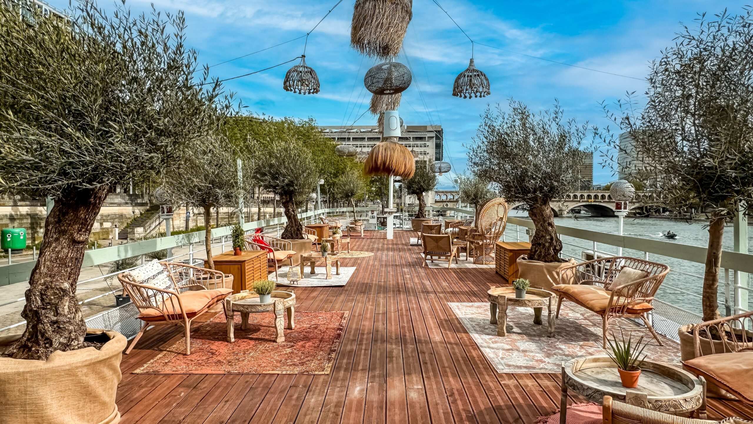 Amarrée sur les rives vivantes de la Seine, L’Olivia by La Fabrique offre une expérience événementielle lumineuse et immersive, entre architecture panoramique et atmosphère méditerranéenne.