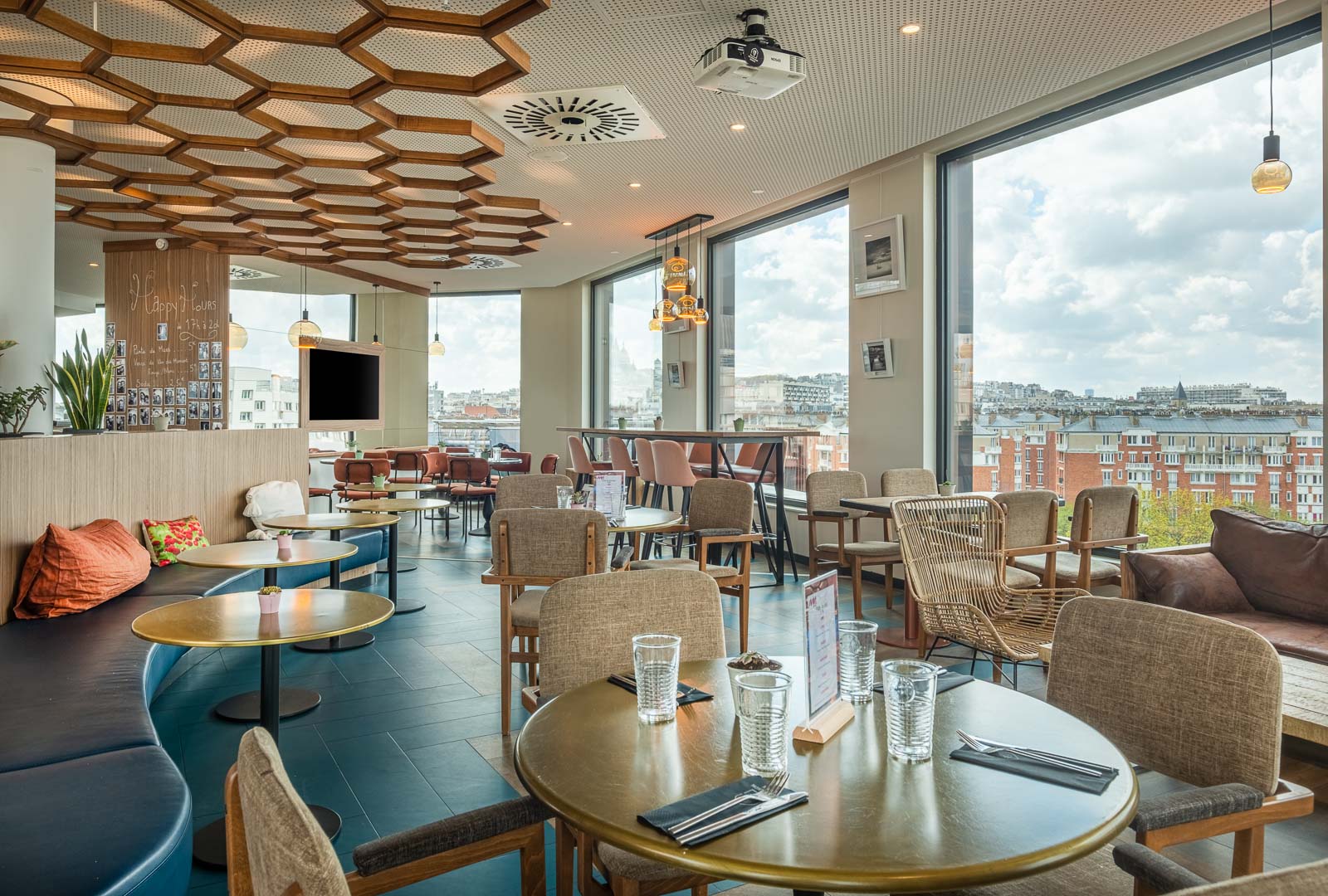 🍸 Espaces offrant ces vues : bar panoramique au 8ᵉ étage et salle de séminaire au 7ᵉ étage