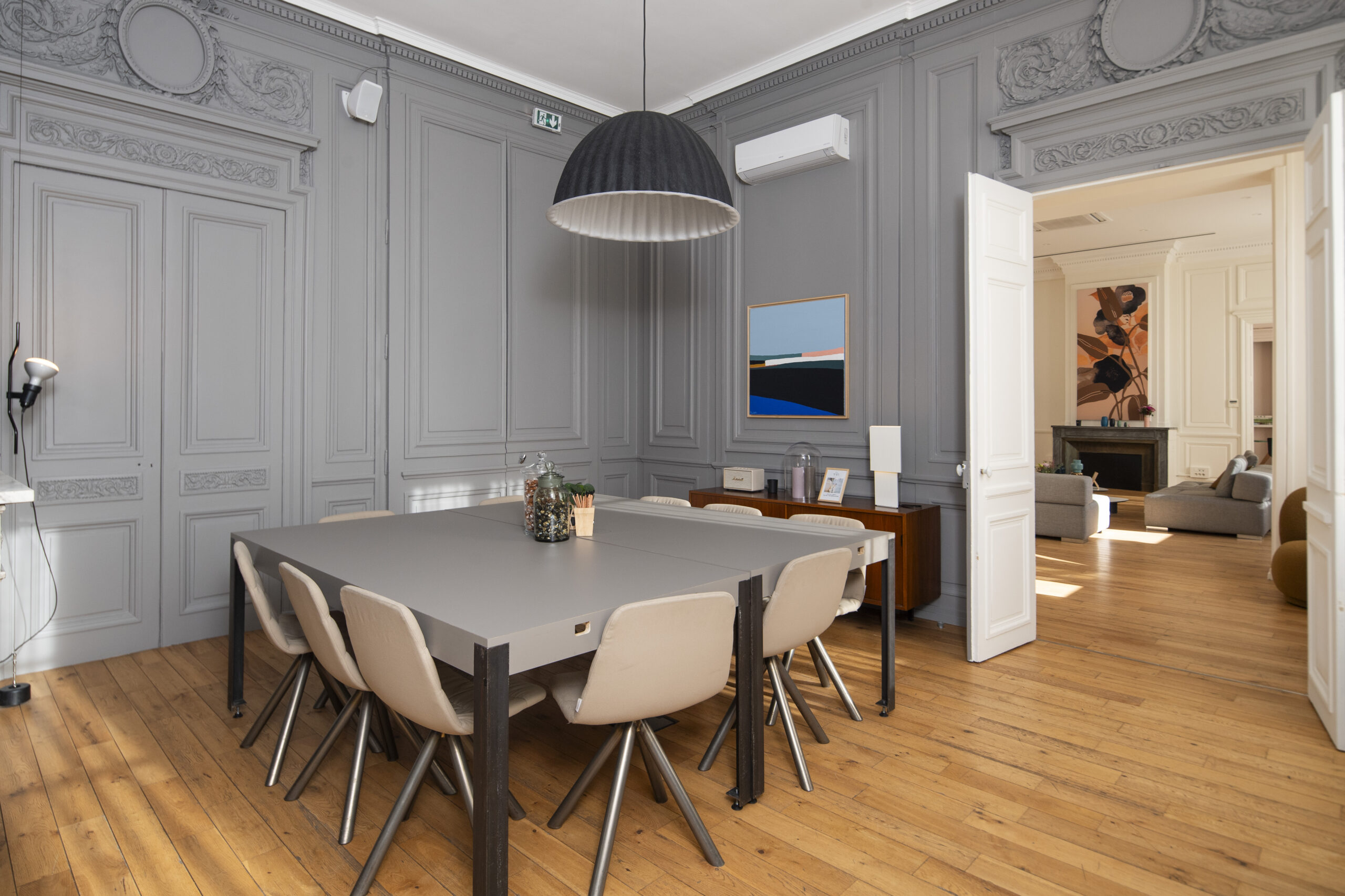 À seulement 7 minutes de la Gare de Perrache et moins de 15 minutes de la Gare Part-Dieu, ce bel appartement haussmannien de 210 m², composé de 4 pièces, accueille vos équipes et vos événements d’entreprise de 16 à 100 personnes.