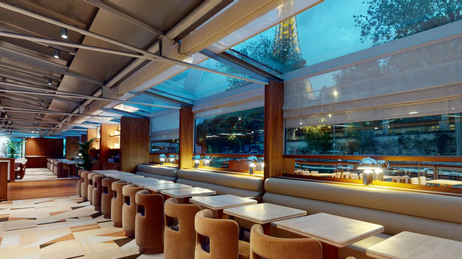 Espace extérieur : Grâce à ses immenses baies vitrées totalement ouvertes, le Noti club offre une vue imprenable sur la Seine.
