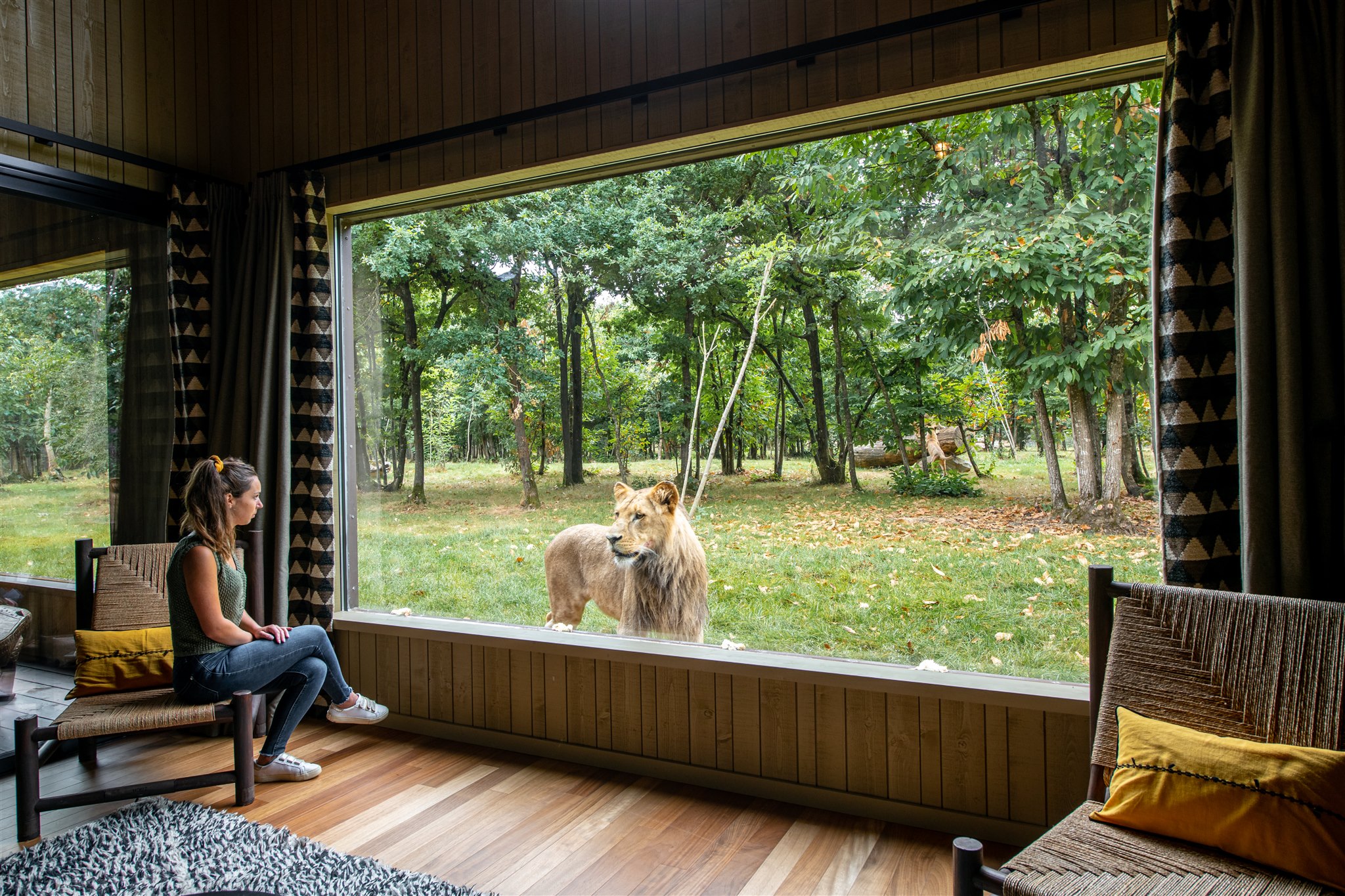 Nos lodges sont spacieux, luxueux et conçus avec goût, offrant un cadre chaleureux et raffiné. Chaque lodge est équipé de tout le confort moderne, garantissant une expérience de séjour agréable et relaxante. Vous pourrez vous reposer confortablement, aux sons apaisants de la nature environnante face aux girafes, lions, guépards ou tigres.